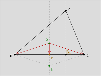 Per utilizzare la conclusione (1) del precedente problema, dobbiamo individuare il rapporto k nel quale la bisettrice dell'angolo in A divide il lato opposto BC. Questo rapporto si ottiene facilmente se ricordiamo quanto afferma il teorema delle bisettrici: con le notazioni di fig. 15 e supposta AP la bisettrice di