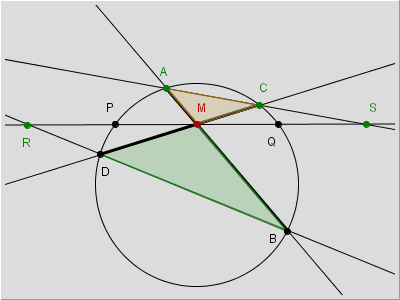 Problema 10.1. Se per il punto medio M di una corda PQ di un cerchio si conducono due altre corde AB e CD e le rette BD e AC intersecano la retta PQ rispettivamente in R e S, allora M risulta il punto medio di RS.