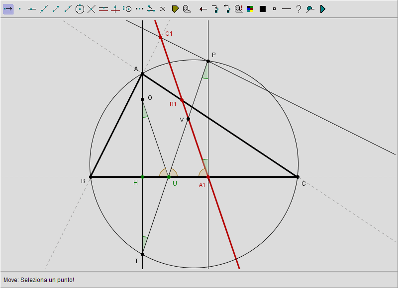 I punti P, A, T e C appartengono alla circonferenza circoscritta per costruzione mentre il quadrilatero PB1A1C risulta inscritto in un cerchio di diametro PC in quanto